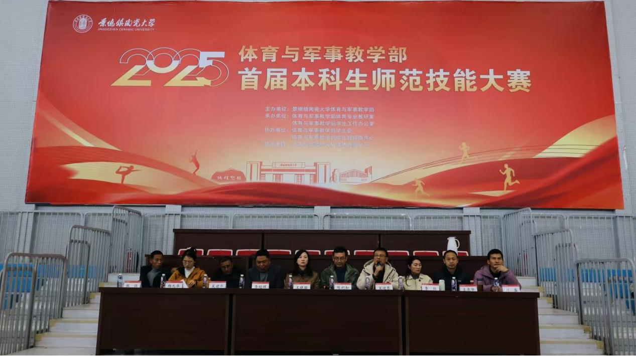 2025年12月31日,体育与军事教学部在湘湖校区体育馆举行首届本科生师范技能大赛。出席本次比赛的嘉宾有体军部党委书记王晓丽、主任陈利和、副书记李越辉、副主任宋迎东,各评委老师,参赛学生以及2023级全体本科生。